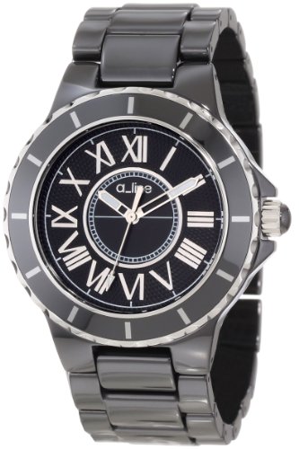 The a_line Women's 20040-BKBSR Marina Black Textured Dial Ceramic Watch is a sophisticated boyfriend-style timepiece made for a confident woman on the go. Featuring a black analog dial, Roman numeral hour markers and a black ceramic band, this beautiful watch is a must have. Japanese quartz movementa_line Women's 20040-BKBSR Marina Black Textured Dial Ceramic Watch Do not Miss!! The a_line Women's 20040-BKBSR Marina Black Textured Dial Ceramic Watch is a sophisticated boyfriend-style timepiece made for a confident woman on the go. Featuring a black analog dial, Roman numeral hour markers and a black ceramic band, this beautiful watch is a must have. Japanese quartz movement... a_line Women's 20040-BKBSR Marina Black Textured Dial Ceramic Watch