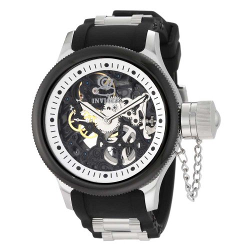 With a bold, design, Invicta has a poised and calm ambience that's sure to have you looking twice. Mechanical movement Flame-fusion crystal; polished stainless steel case; black polyurethane strap with stainless steel barrel inserts 60 second subdial Black skeleton dial with white border, silver tonInvicta Men's 10051 Russian Diver Mechanical Black Skeleton Dial Black Polyurethane Watch Do not Miss!! With a bold, design, Invicta has a poised and calm ambience that's sure to have you looking twice. Mechanical movement Flame-fusion crystal; polished stainless steel case; black polyurethane strap with stainless steel barrel inserts 60 second subdial Black skeleton dial with white border, silver ton... Invicta Men's 10051 Russian Diver Mechanical Black Skeleton Dial Black Polyurethane Watch