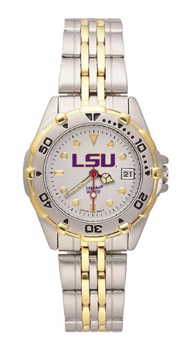 Stylish brushed chrome finish case with a rotating two-tone bezel and matching two-tone stainless steel bracelet. The All Star features a precision Miyota quartz movement, distinguished dial face, with the team logo on the top half and team name on the lower half of dial. Also features date window, NCAA LSU Tigers Women's All Star Watch Stainless Steel Bracelet Do not Miss!! Stylish brushed chrome finish case with a rotating two-tone bezel and matching two-tone stainless steel bracelet. The All Star features a precision Miyota quartz movement, distinguished dial face, with the team logo on the top half and team name on the lower half of dial. Also features date window, ... NCAA LSU Tigers Women's All Star Watch Stainless Steel Bracelet